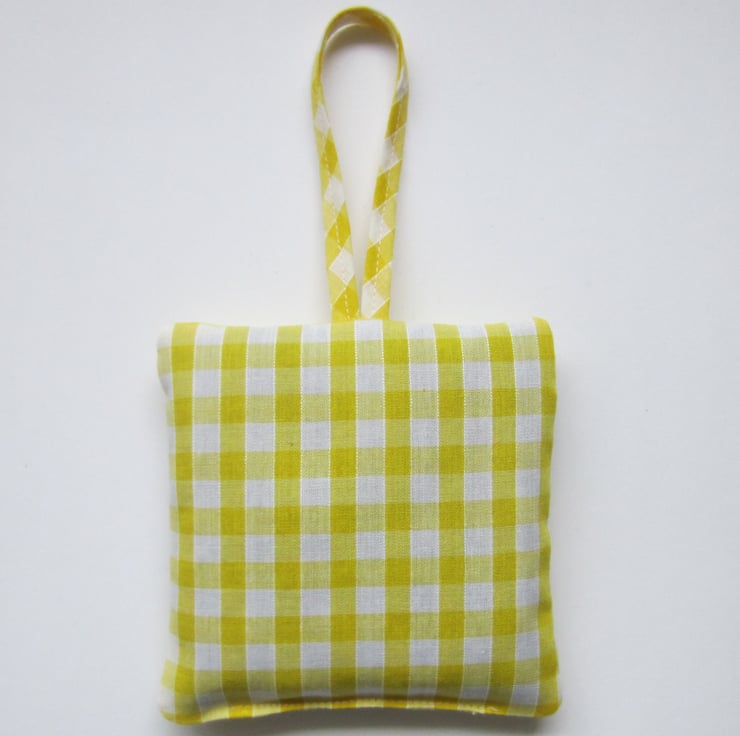 It is filled with Suffolk lavender hand picked and prepared by me and hangs with a matching loop.
