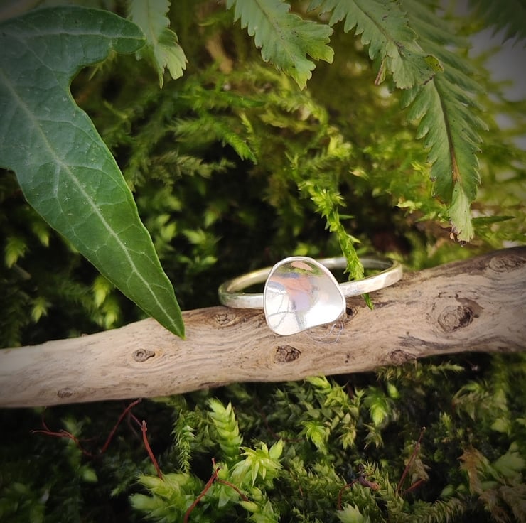 Modern, minimalistic, delicate ring with irregular triangular accent on the top.