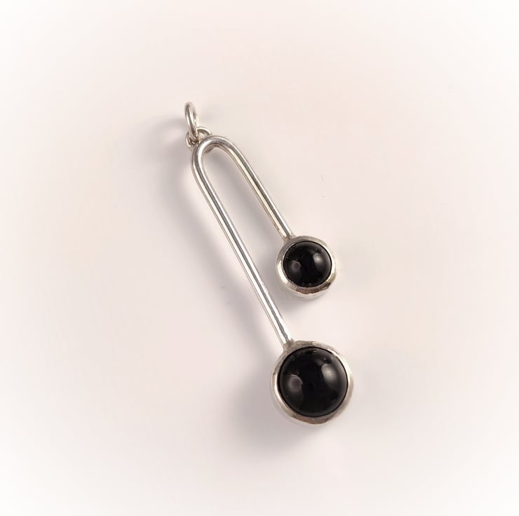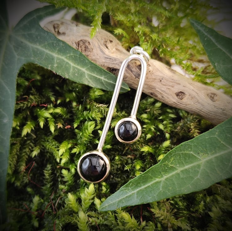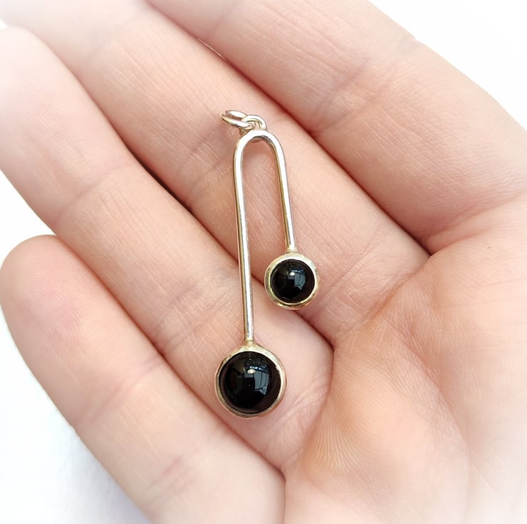 Funky, modern design with beautiful contrast between shiny silver and deep black onyx cabochons