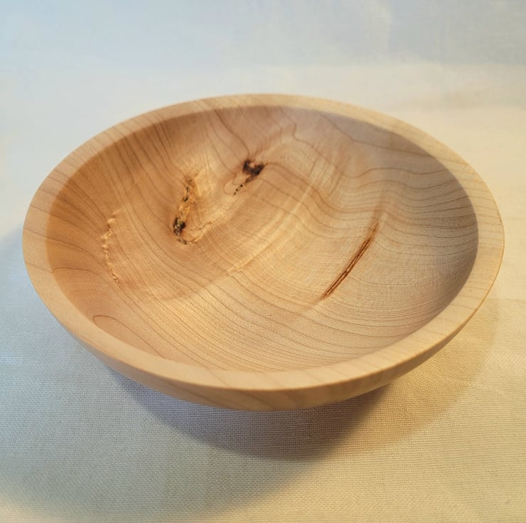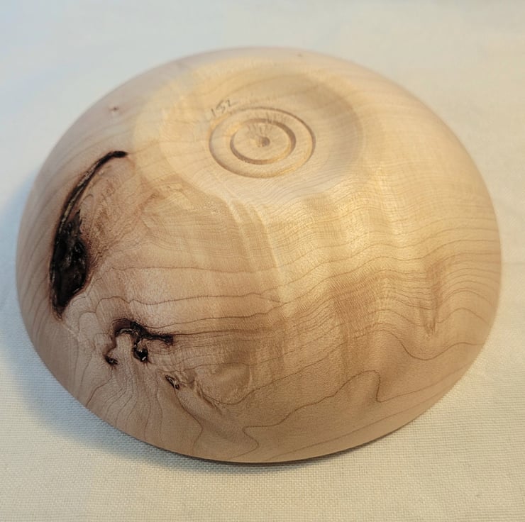 Horse Chestnut bowl, 145 x 43mm (14.5 x 4.3cm), A nice curved Horse Chestnut bowl, with a narrow in sloping rim. The grain holds a lot of interest in this bowl, with areas of looped, straight and wavy grain with areas of knots and ripple that look almost 3D in the light. Great for decoration or food items such as nuts or sweets.
