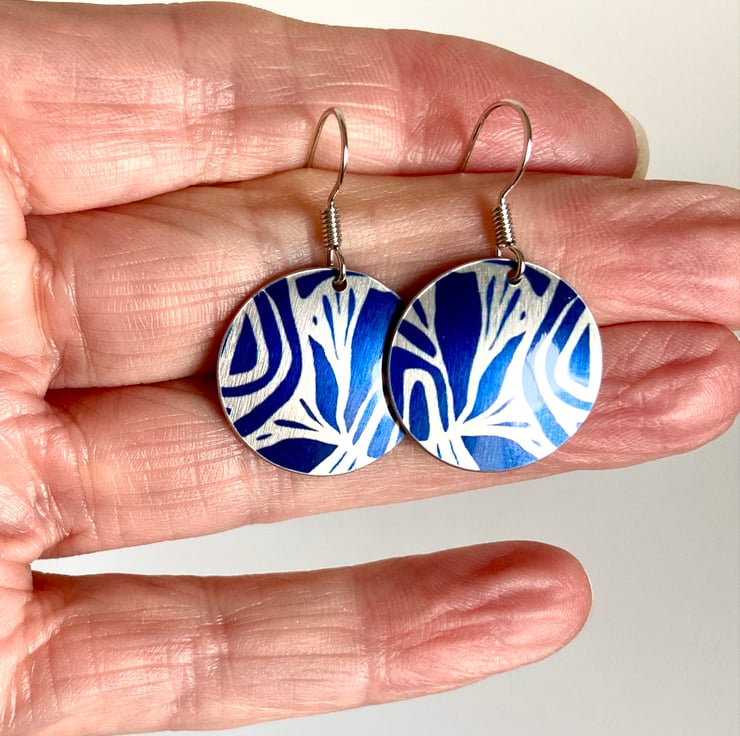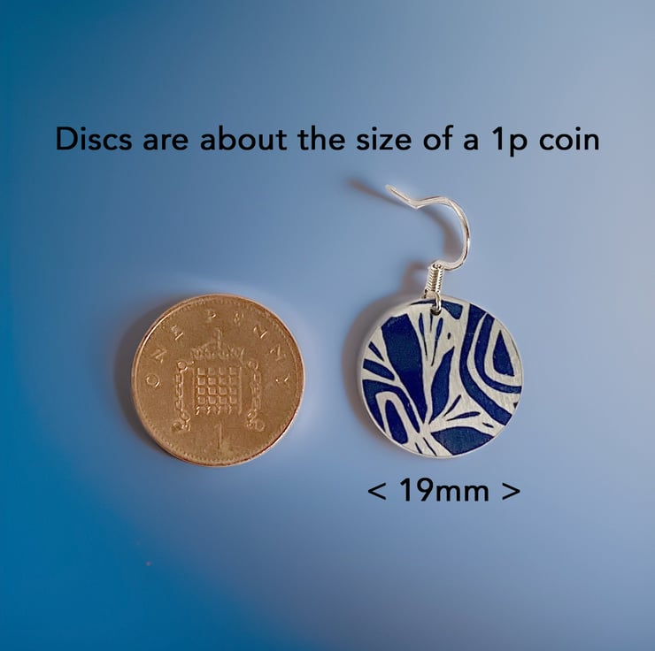 The aluminium discs are 19mm (3/4") and hang from Sterling Silver ear wires.