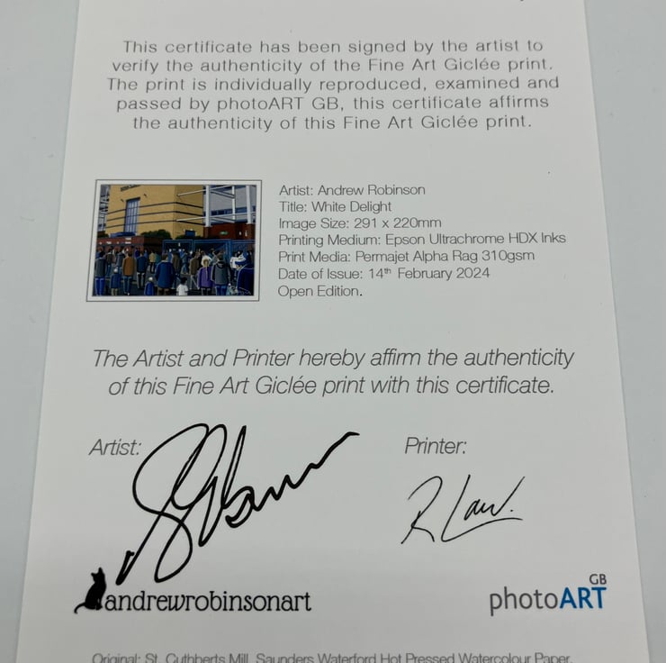 Titled ‘White Delight’ this is a unique Leeds Utd print direct from myself the artist. My artworks are a celebration of the match day experience and of stadium architecture.