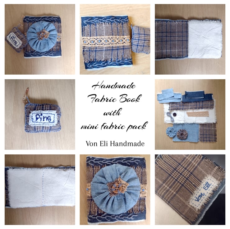 There are 4 pieces of the plain fabric to embroider or collage onto and add to the book, or