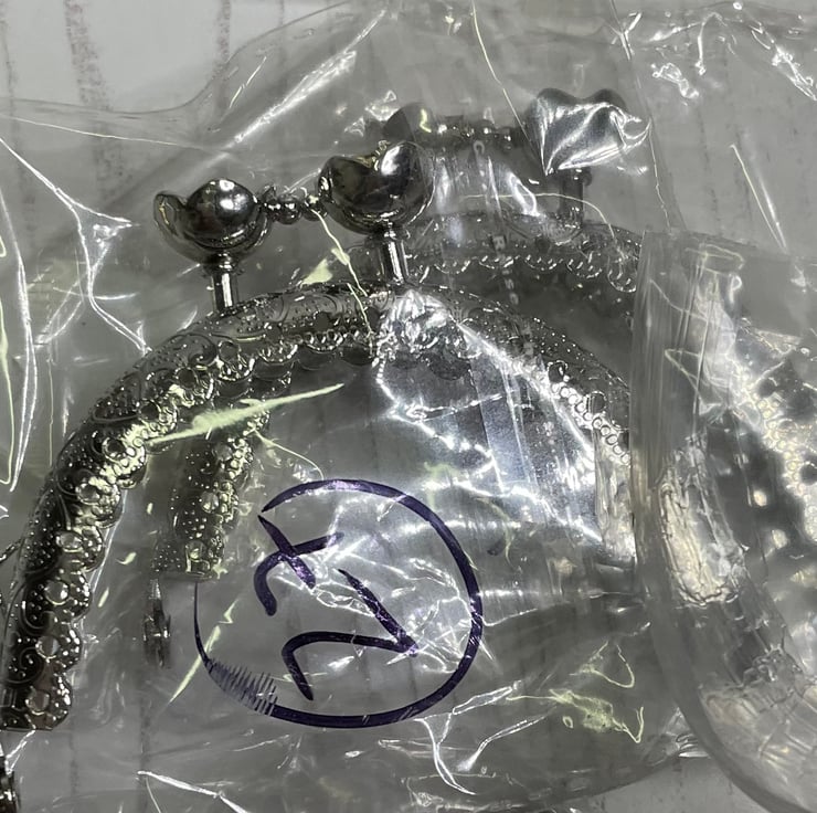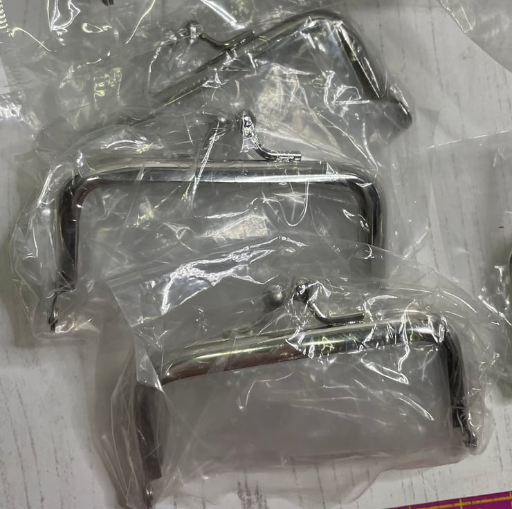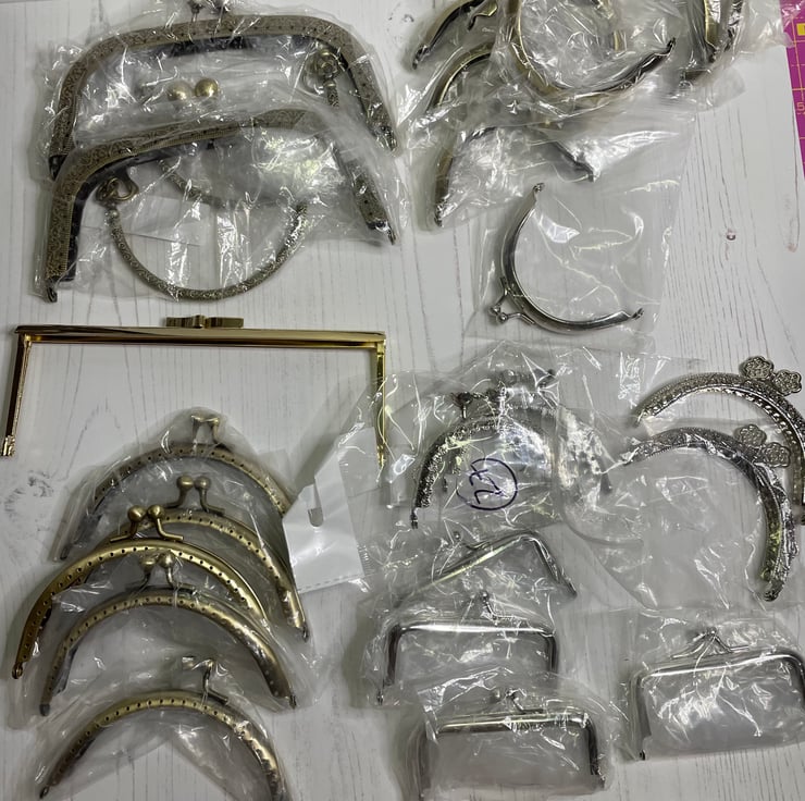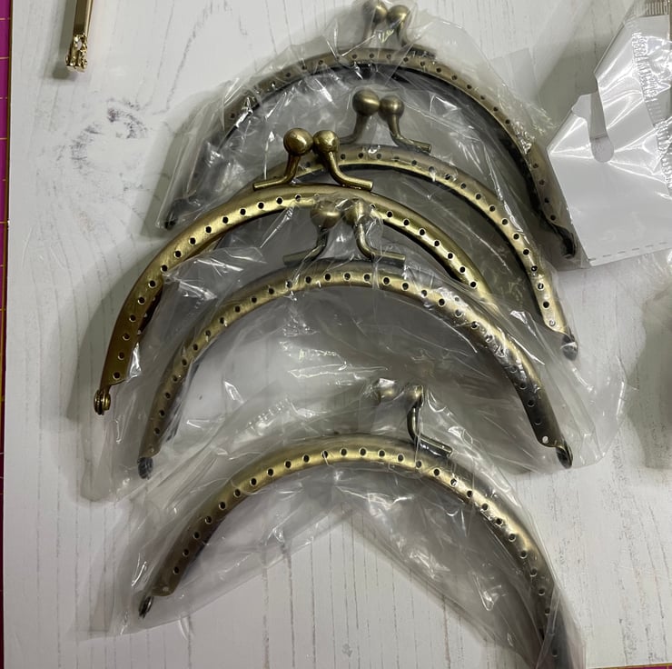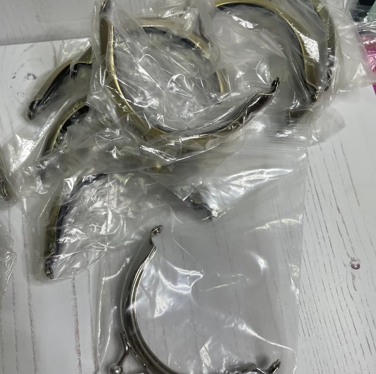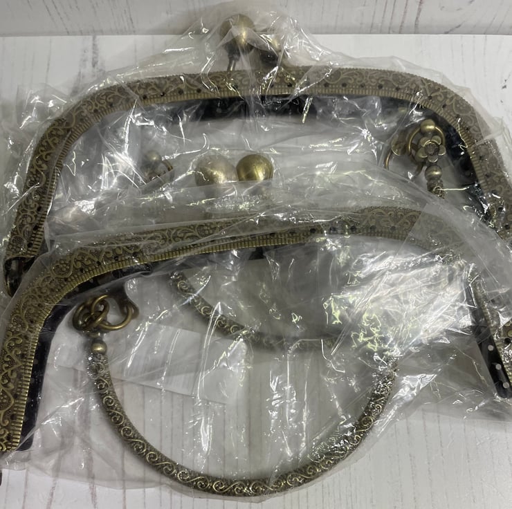 9 x curved glue in purse frames. Silver x 1 bronze x 8. 3” at widest point.