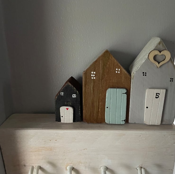 I started making little houses for friends as new home gifts, or with children's names on them for their own little bedrooms. Friends convinced me to start selling and 1,000 houses later I am still loving creating little houses for people! I love to hear the stories behind the orders and have shipped little houses all over the world now, including creating 50 little houses as key rings for a hotel!