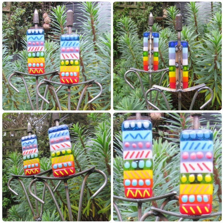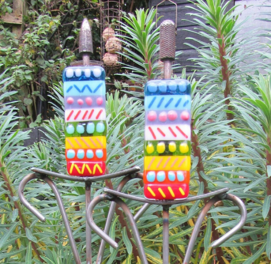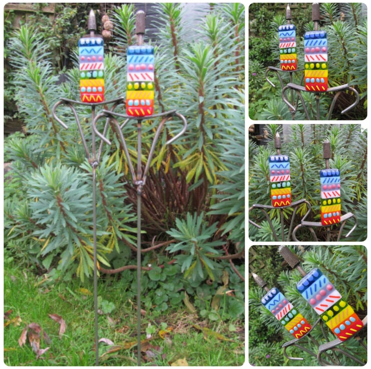 This brightly coloured, hand made set of 2 bulrush garden ornaments make a lovely gift for anyone who is a keen gardener, they bring a splash of colour to a dull garden corner, a centre piece in a rockery or colourful addition to a large planter.
