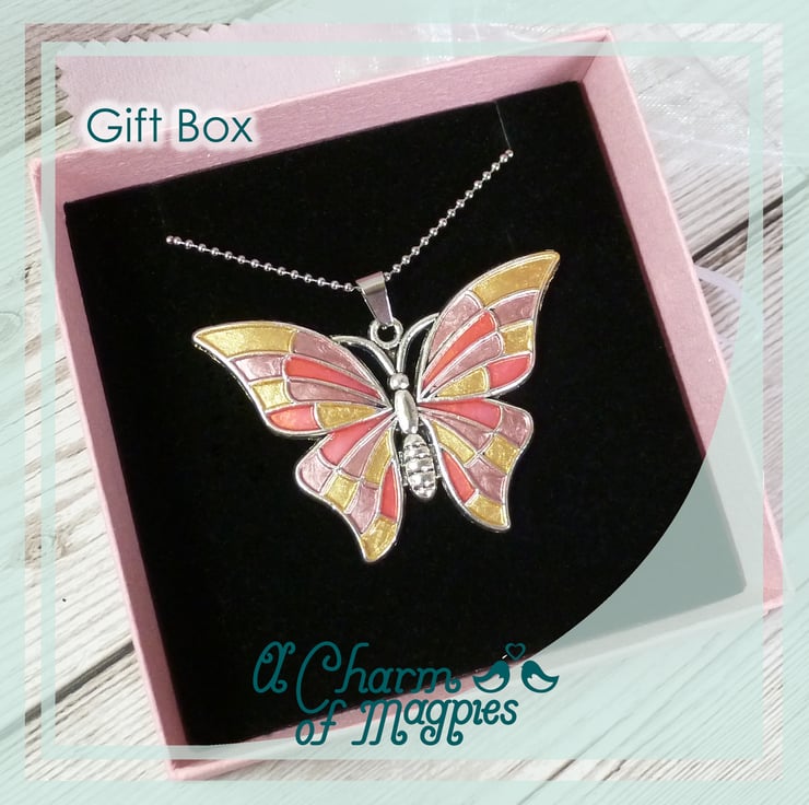 Postage & Packaging: Postage is charged per order, no matter how many items you buy. Your butterfly pendant will be placed in a chiffon bag and packaged in recyclable cardboard postage box. Orders are usually posted the next working day via Royal Mail Tracked 48. International deliveries include tracking and may take up to 30 working days.