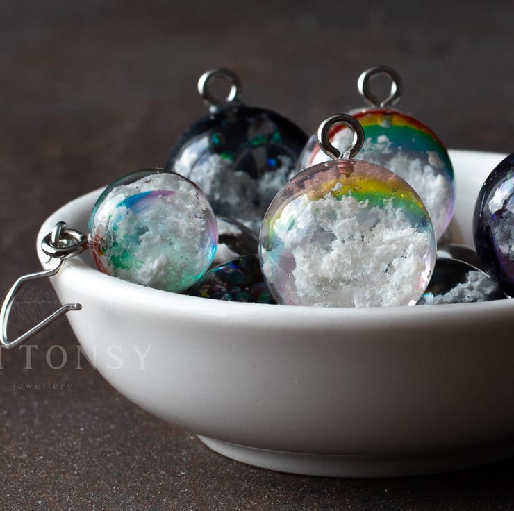 This is romantic, peaceful jewellery; it has been made in a dozen stages to ensure it looks exactly like a real, 3 dimensional, tiny sky. Truly magical.