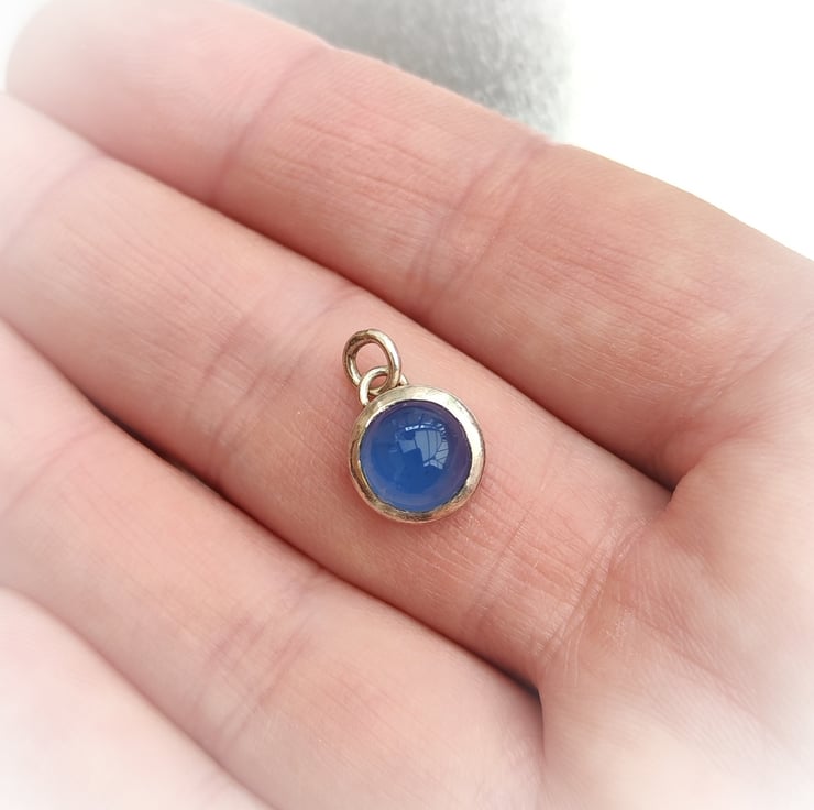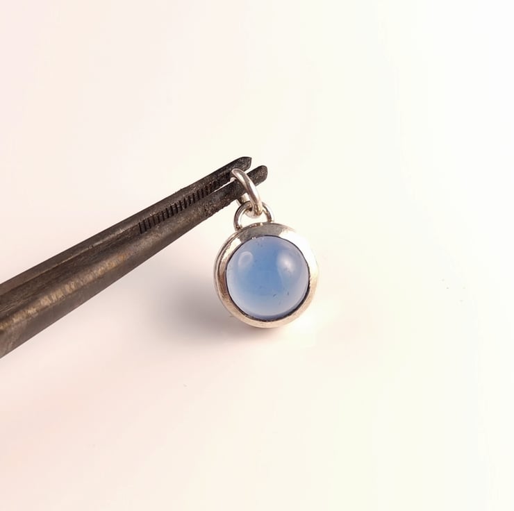 Delicate sterling silver pendant with round cabochon blue agate gemstone