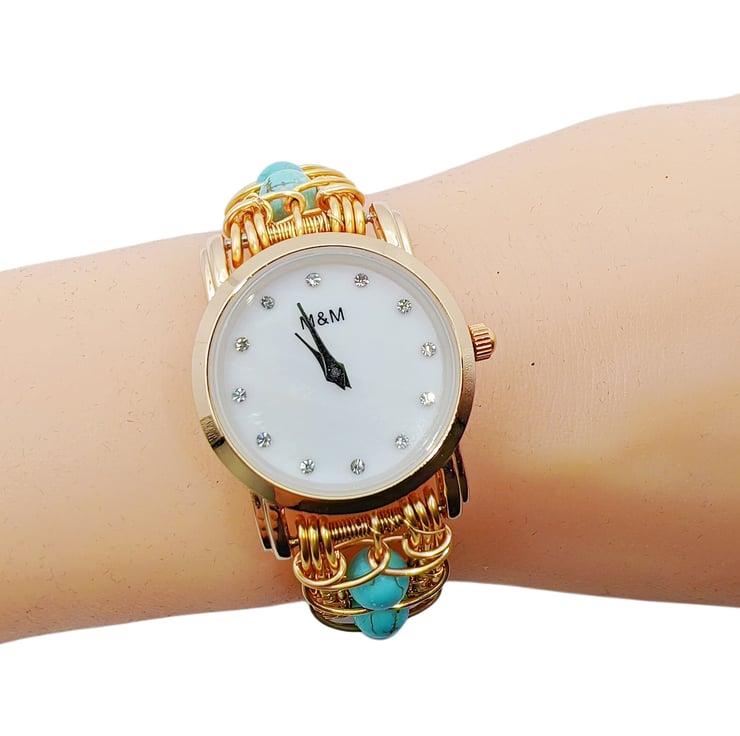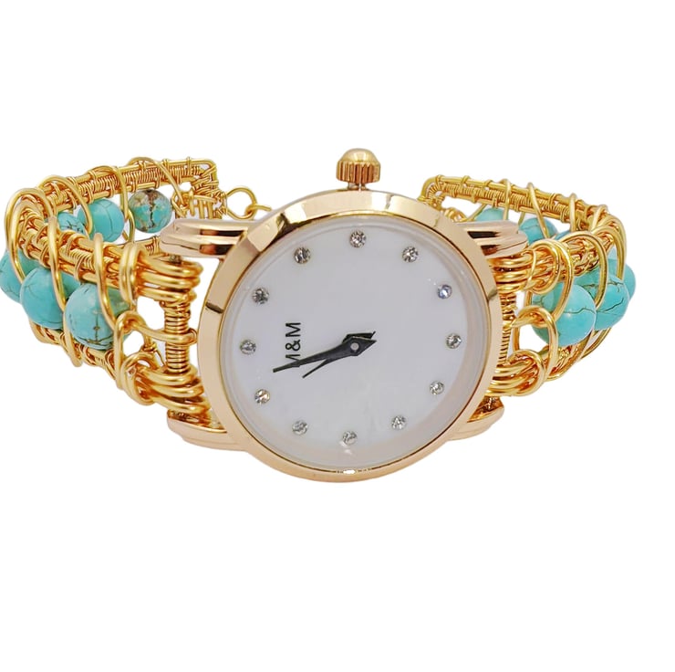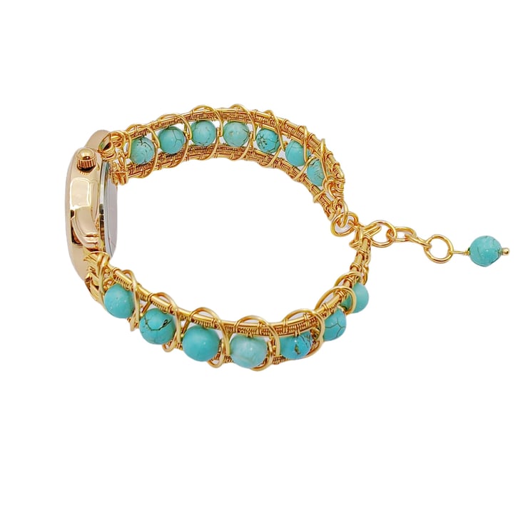 Name:Wire wraped handmade turquoise beads bracelet watch