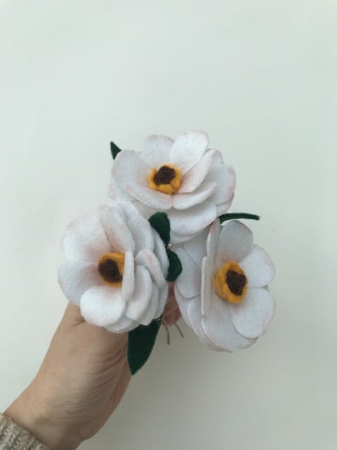Felt flowers will never waver. They are a lovely gift idea that will last for years and can be added to a decorative vase or wreaths and garlands.