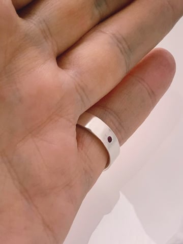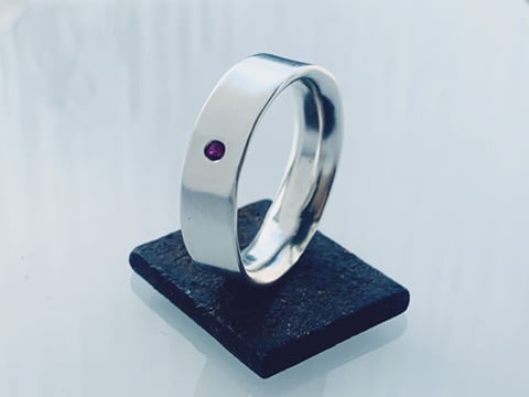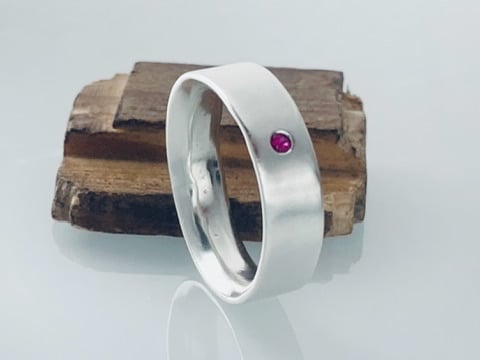 Surface is flat and polished the inner of the ring is curved that is an extremely comfy ring to wear.