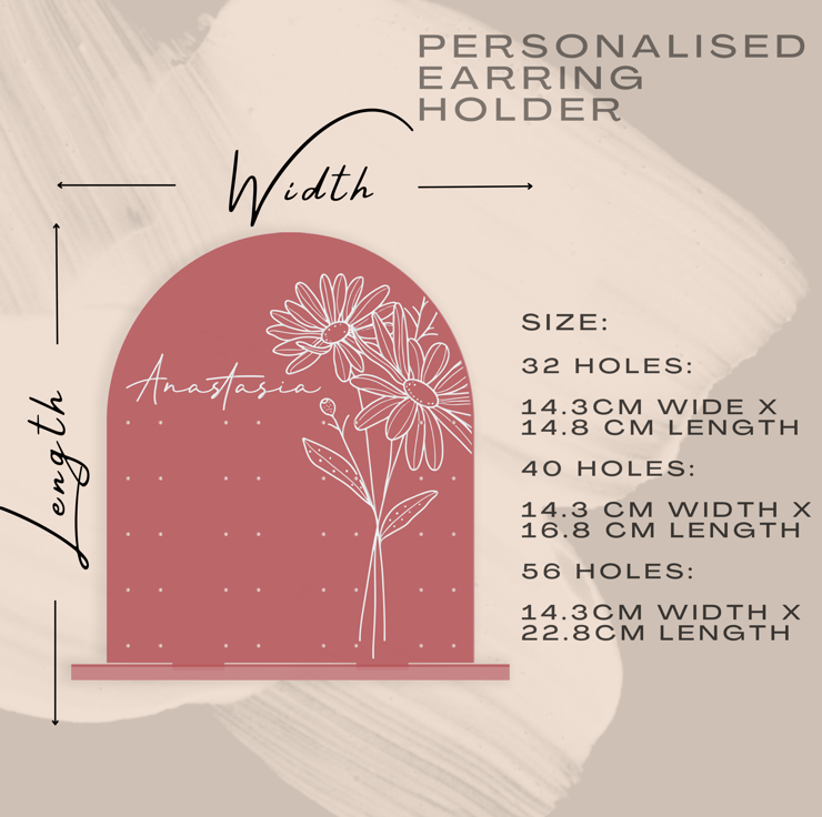 Whether you're treating yourself or surprising a loved one, our personalised acrylic earring holder with a floral design is a delightful addition to any jewellery lover's repertoire.