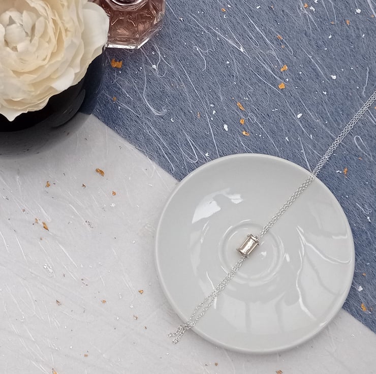 The necklace will arrive in a black jewellery box, complete with simple care instructions and a small square of silver polish.