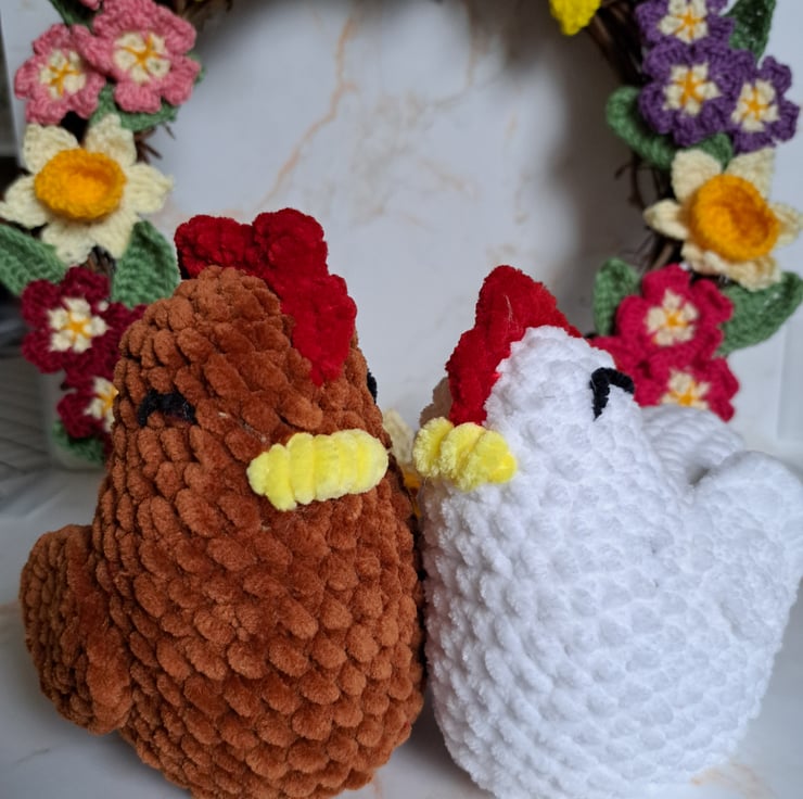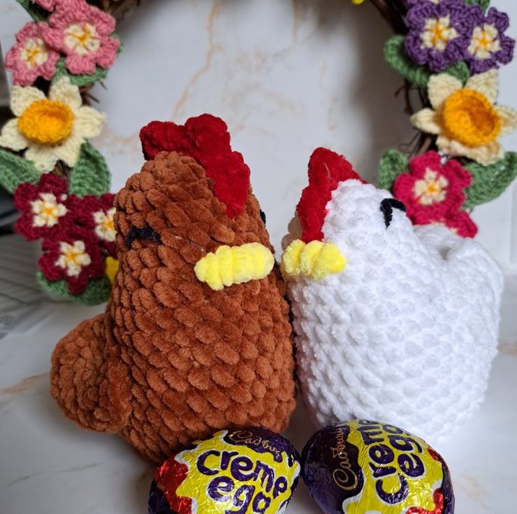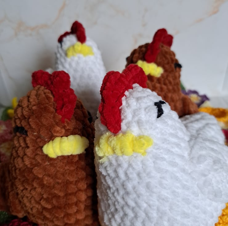 The chicken can sit in your hand its approximately 4 inches high by 4 inches wide.