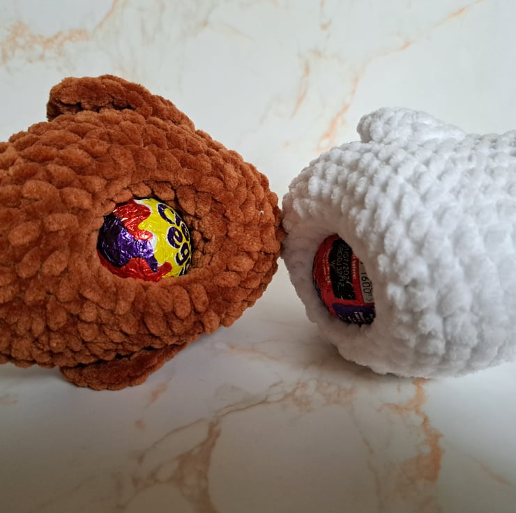 It has a little compartment in which to put a small Easter egg, please refer to the photos.