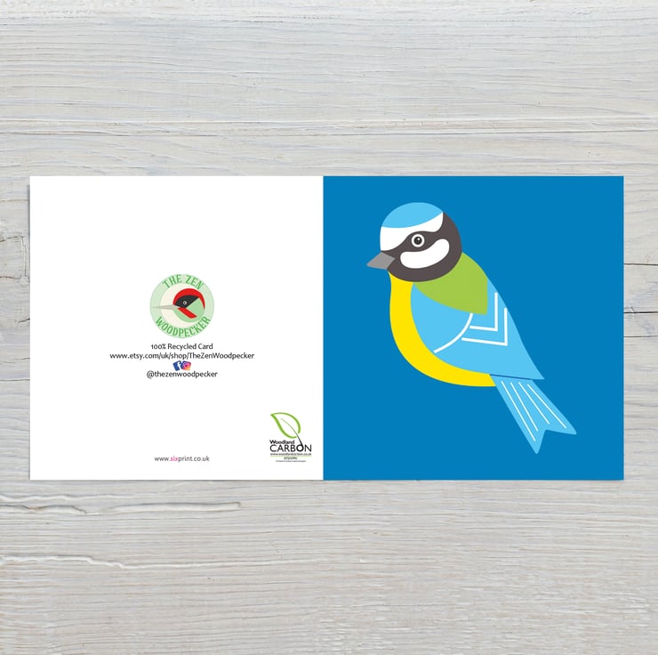 Blue Tit Card, Bird Greeting Card, Eco Friendly Blank Card, Garden Bird Card