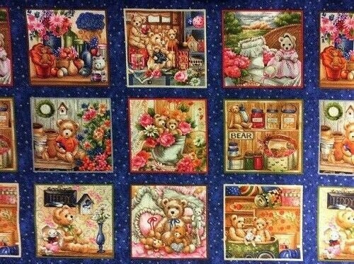 This is for a piece of printed, 100% cotton Fabric from the Buddy Bears range of printed fabrics by Fabri-Quilt. Each Panel measures approx 9.5cm x 8.5cm. There are 50 panels in total.