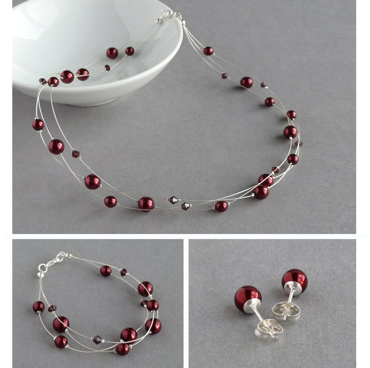 Burgundy floating pearl jewellery set: https://folksy.com/items/7073246