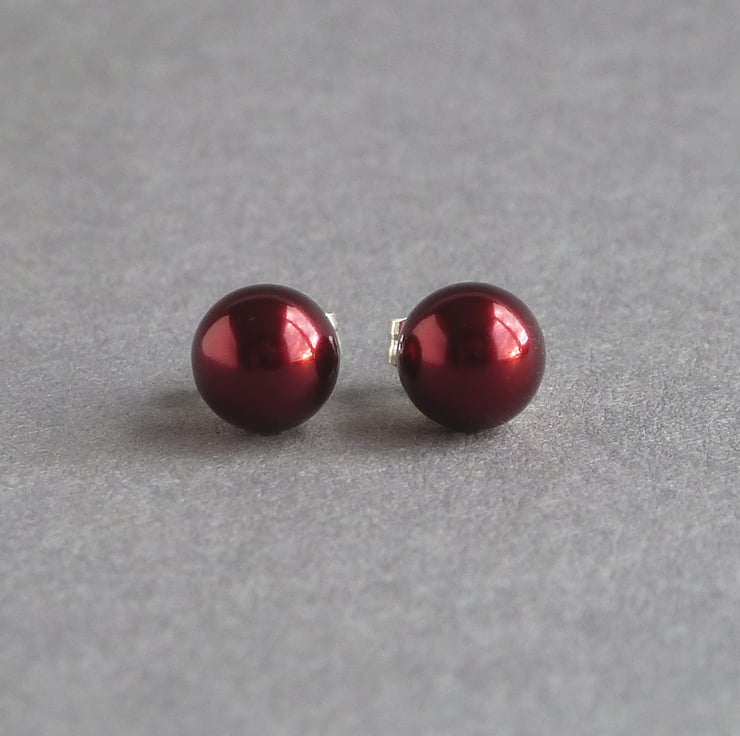 Simple burgundy pearl drop earrings: https://folksy.com/items/7392872