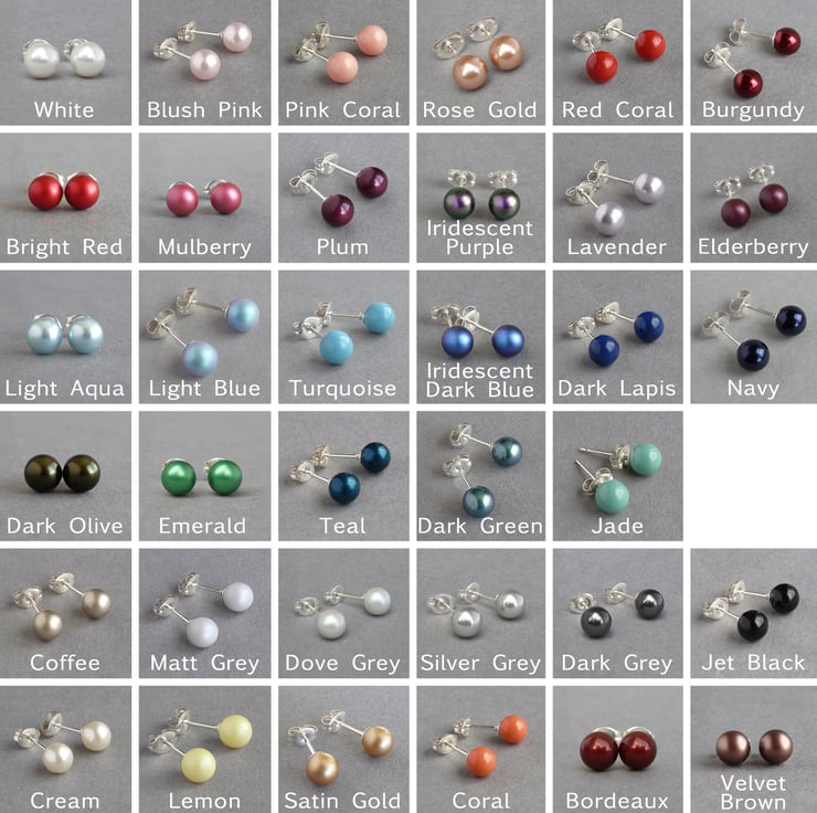 All of the metal elements used to make these small pearl studs are Sterling silver. To ensure your claret pearl studs stay securely in place, these burgundy earrings come with a pair of butterfly backs.