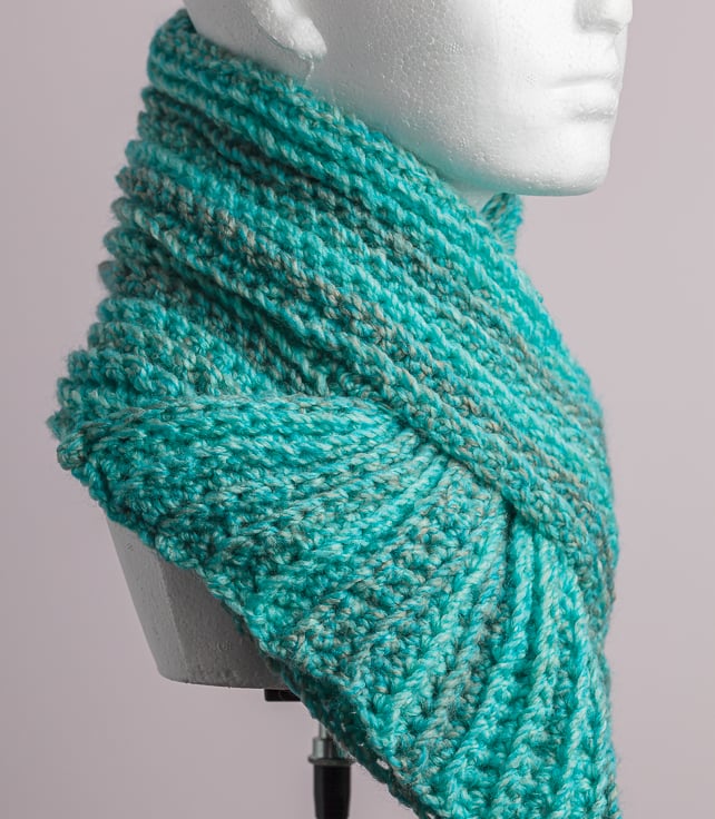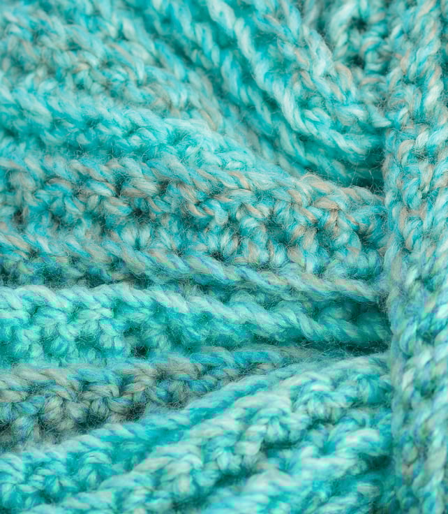 This crochet cowl is made from 100% acrylic yarn in a chunky weight (no animal fibres).