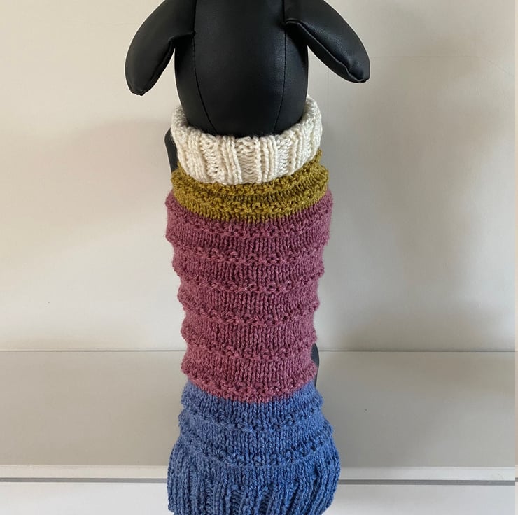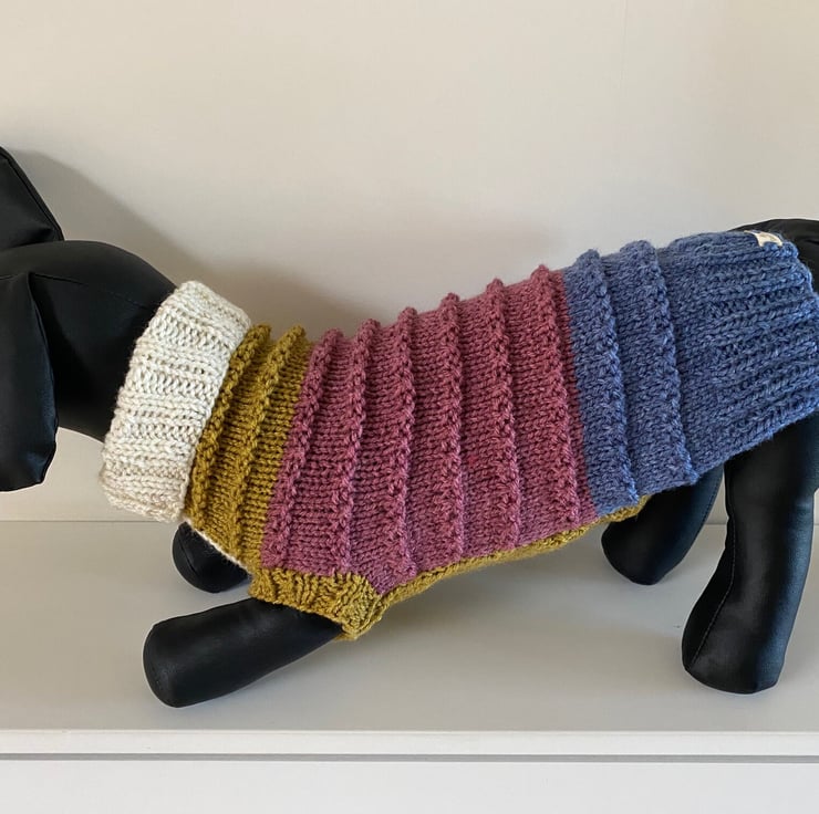 Dog Jumper - Ideal for a Miniature Dachshund or Small Dog, Hand Knitted Jumper in Ridge Stitch with a Roll Neck.