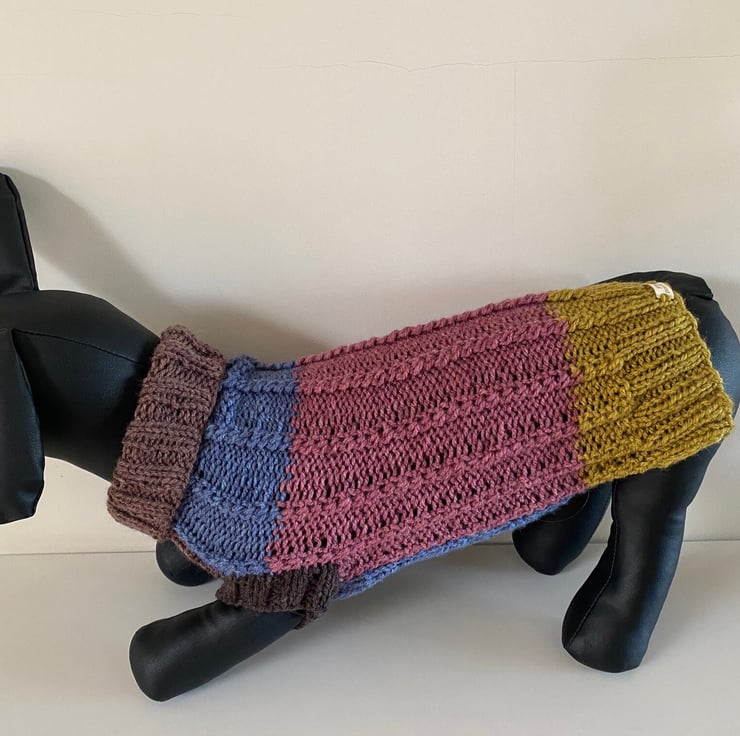 Dog Jumper - Ideal for a Miniature Dachshund or Small Dog, Hand Knitted Jumper in Twisted Rib Stitch.