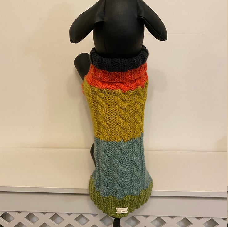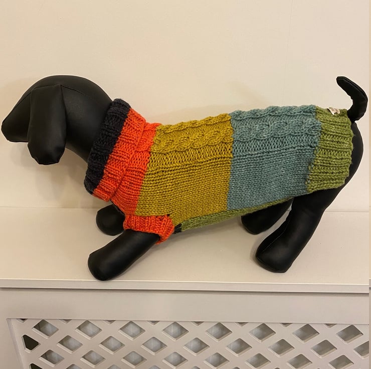 Dog Jumper - Ideal for a Miniature Dachshund or Small Dog, Hand Knitted Jumper with Cable Stitch down the back.