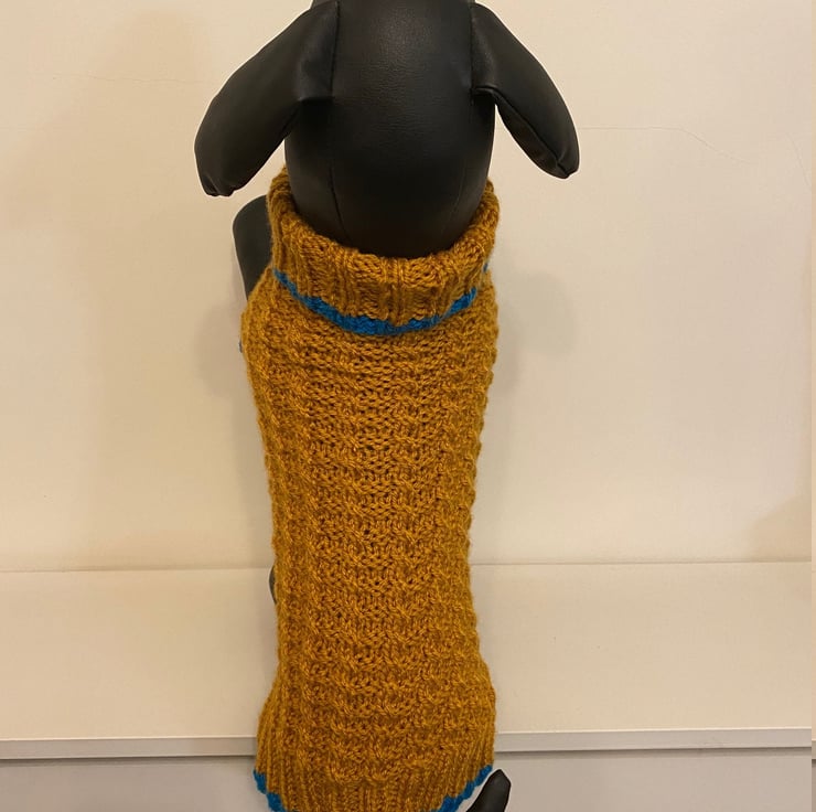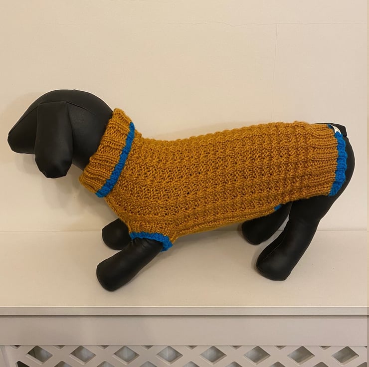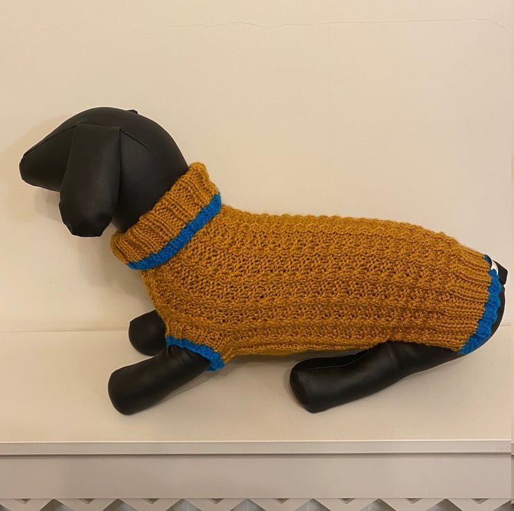 Dog Jumper with a Roll Neck - Ideal for a Miniature Dachshund or Small Dog, Hand Knitted Jumper in Basket Rib Stitch.