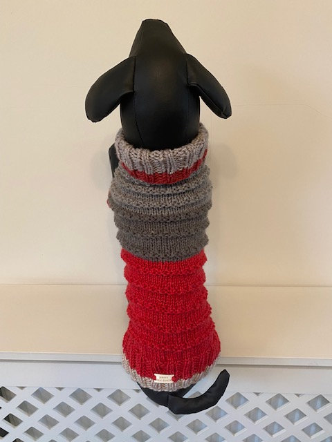 Dog Jumper - Ideal for a Miniature Dachshund or Small Dog, Hand Knitted Jumper in Ridge Stitch with a Roll Neck.