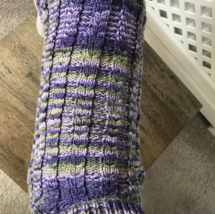 Hand knitted in Bernat Super Value Ombre - Colour - Fresh Lilac 100% Acrylic Hand WashMachine Wash, Dry Flat