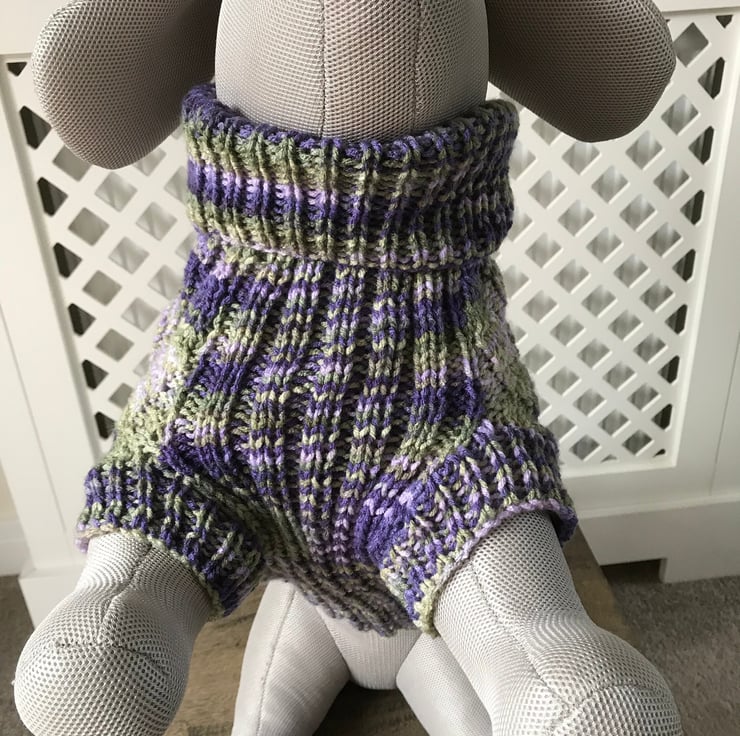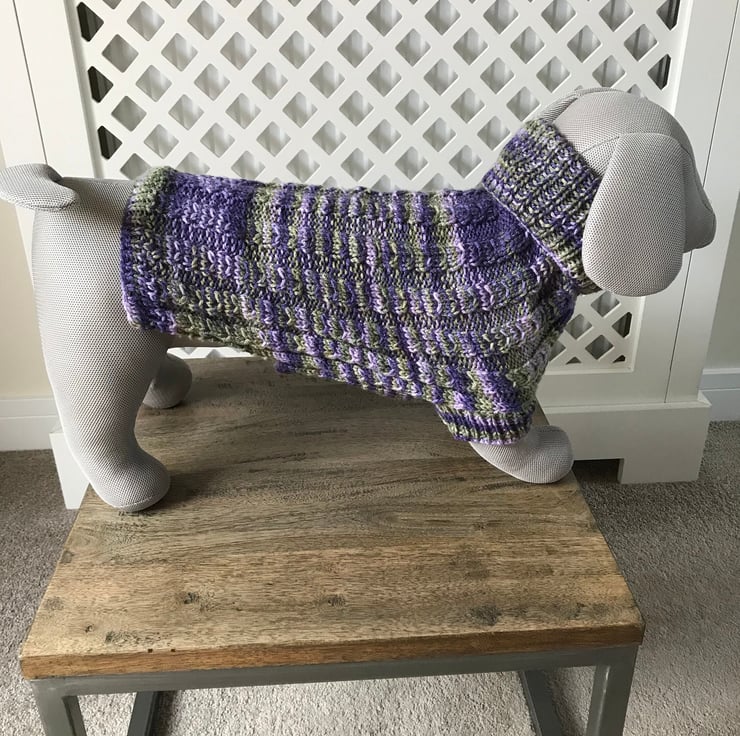 Dog Jumper - Ideal for a Medium-Sized Breed of Dog, i.e. Springer Spaniel. Cockerpoo. Roll Neck Hand Knitted Jumper in an Arrow Cable Stitch.