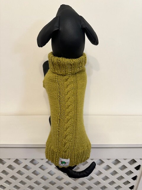 Sleeveless Dog Jumper with a Roll Neck - Ideal for a Miniature Dachshund or Small Dog, Hand Knitted Jumper with SIngle Cable Stitch.