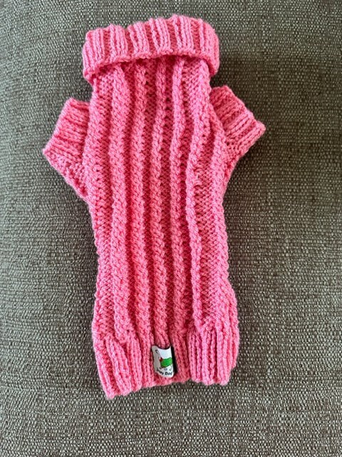 Dog Jumper - Ideal for a Miniature Dachshund or Small Dog, Hand Knitted in Twisted Rib Stitch.