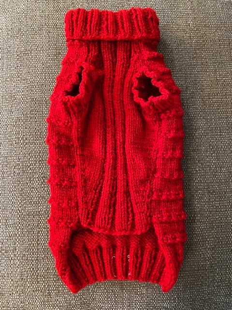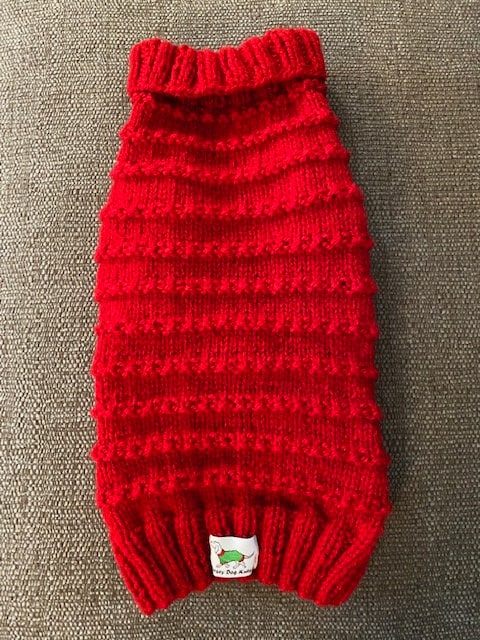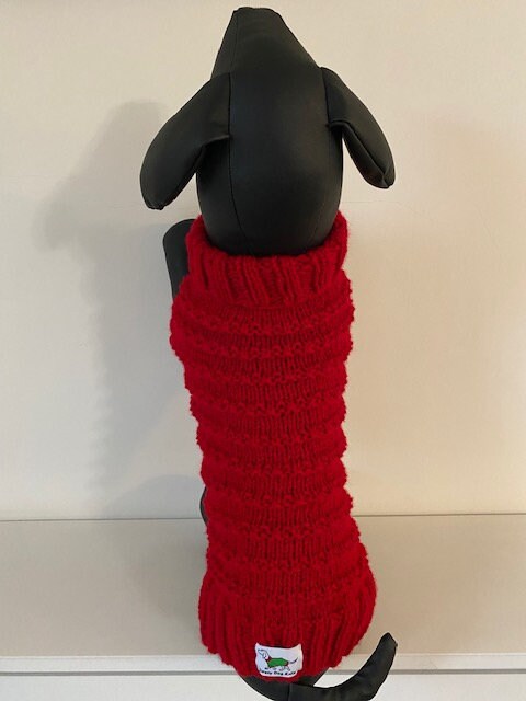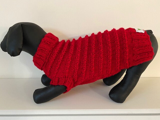 Dog Jumper - Ideal for a Miniature Dachshund or Small Dog, Roll Neck Hand Knitted in Rib Stitch
