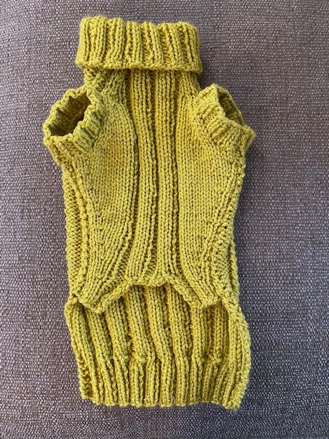 Dog Jumper - Ideal for a Miniature Dachshund or Small Dog, Hand Knitted in Twisted Rib Stitch.