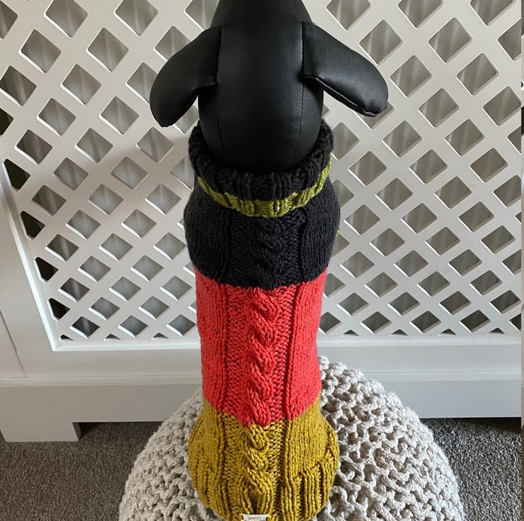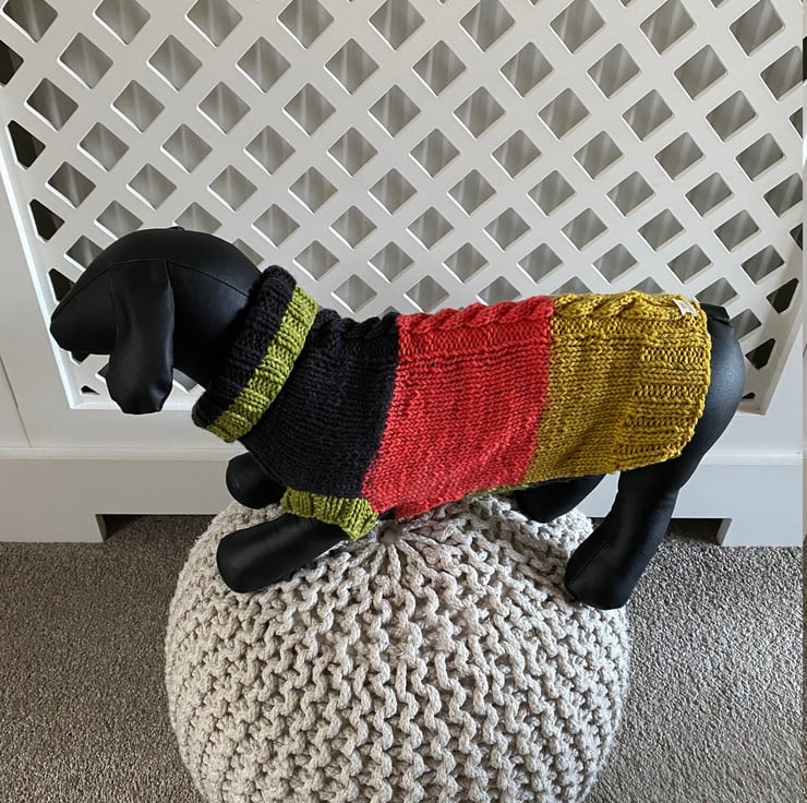 Dog Jumper - Ideal for a Miniature Dachshund or Small Dog, Roll Neck Hand Knitted with a Cabled Stitch down the Back.