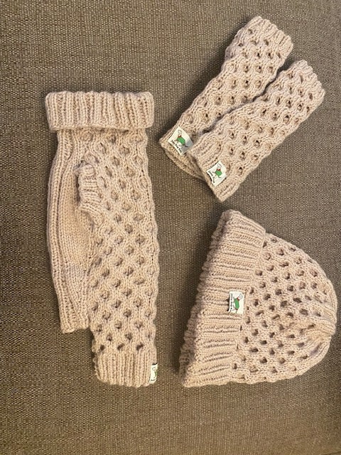 Adult Hats & Wrist-Warmers can be knitted to order to match any of the Dog Jumpers available from my shop, Please message if you would like to order in a different stitch pattern or colour.
