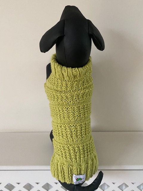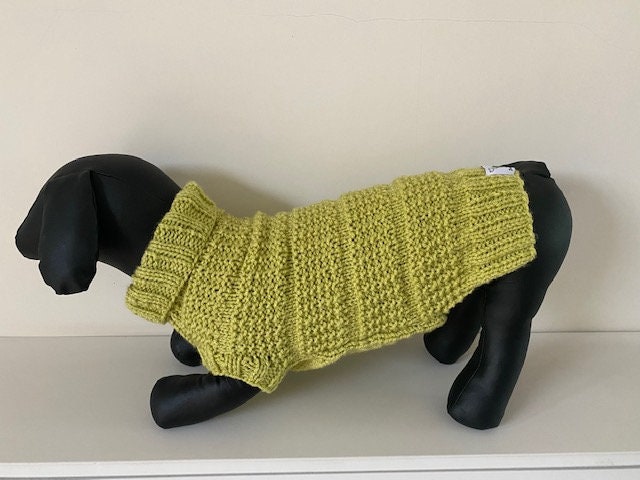 Dog Jumper - Ideal for a Miniature Dachshund or Small Dog, Roll Neck Hand Knitted in a Seed & Stocking Stitch