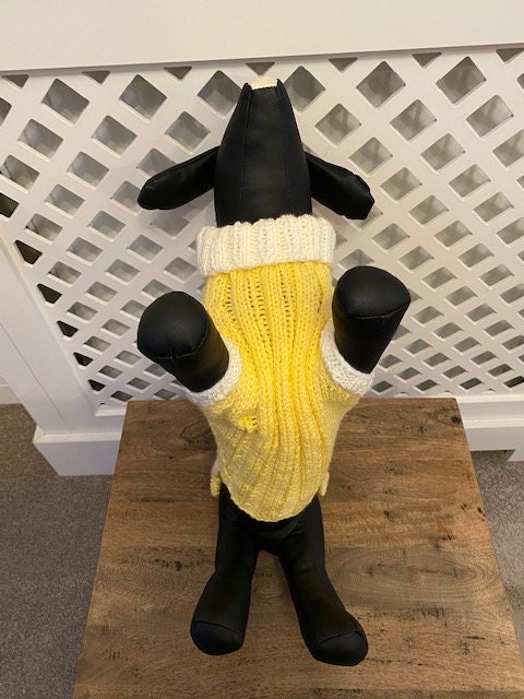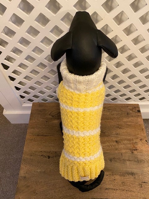 This listing is for a Miniature Dachshund Roll Neck Jumper with a Basket Weave Cable stitch across the back.