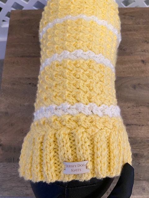 Hand knitted in Paintbox Aran - Daffodil Yellow & Cream 100% Acrylic Hand WashMachine Wash, Dry Flat