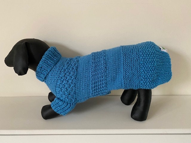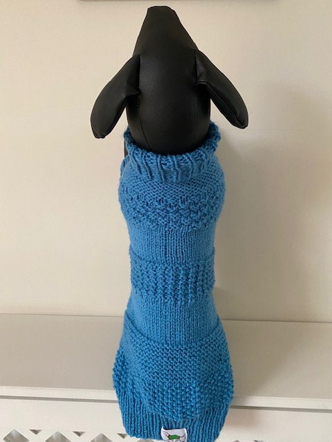 Hand Knitted Roll Neck Dog Jumper in a Mixed Stitch Pattern