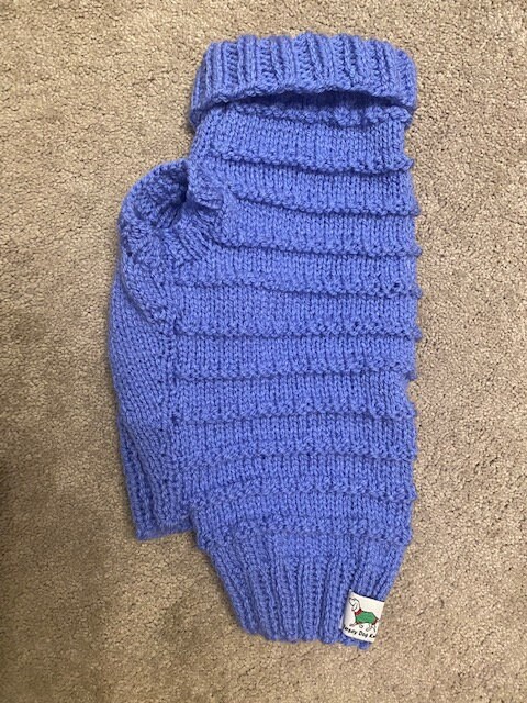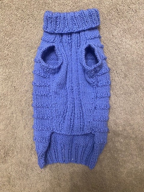 Dog Jumper - Ideal for a Miniature Dachshund or Small Dog, Roll Neck Hand Knitted in Rib Stitch