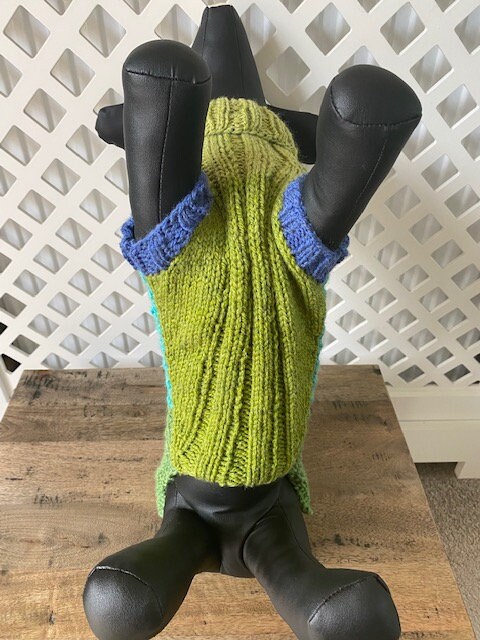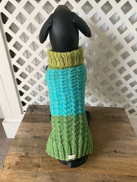 Dog Jumper - Ideal for a Miniature Dachshund or Small Dog, Hand Knitted in Basket Stitch with a Roll Neck