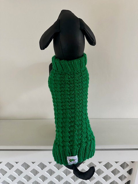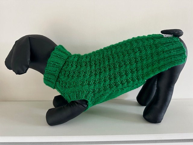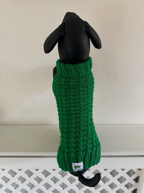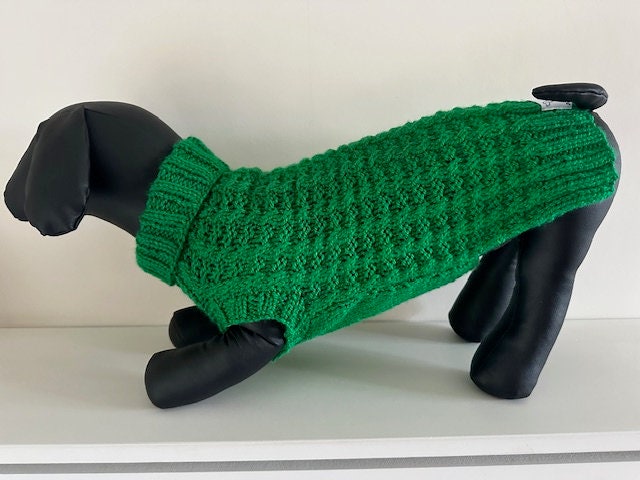 Dog Jumper - Ideal for a Miniature Dachshund or Small Dog, Hand Knitted in Basket Rib Stitch