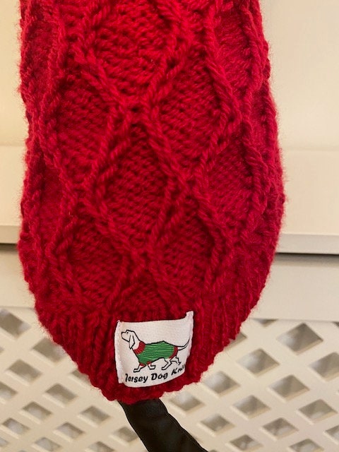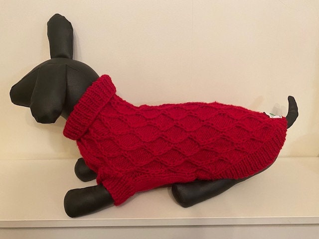Dog Jumper with Diamond Cable Pattern running down the length of the back - Small Size Ideal for Dachshund, Small Poodle or similar sized breed of Dog.
