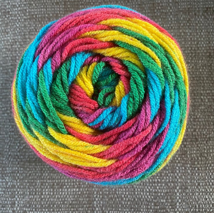 Hand knitted in Paintbox Chunky Pots - Colour - Party Streamers - 100% Acrylic