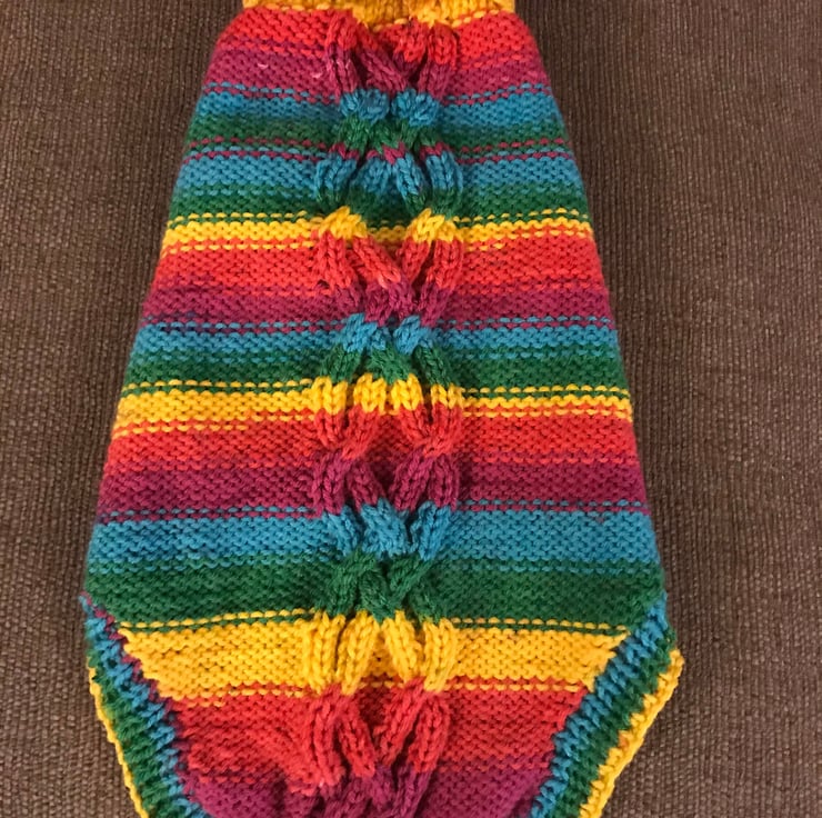 Item is knitted from 1 ball of yarn which omits the joins between colour changes giving a much smoother finish. It has a beautiful criss-cross cable pattern running down the length of the back & is one of my top 3 stylespatterns