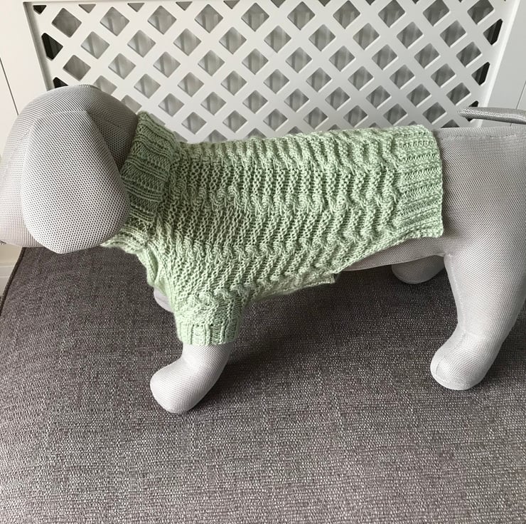 Dog Jumper - Ideal for a Scottie Dog or similar sized Breed - Hand Knitted in Cable & Ladder Stitch with a Roll Neck.